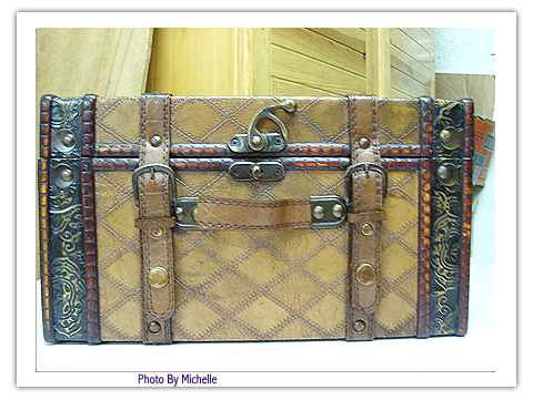 箱子外表貼以格子皮飾,感覺很復古,還有點名牌包包的感覺XD